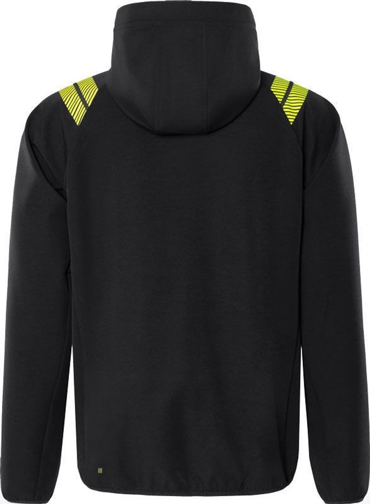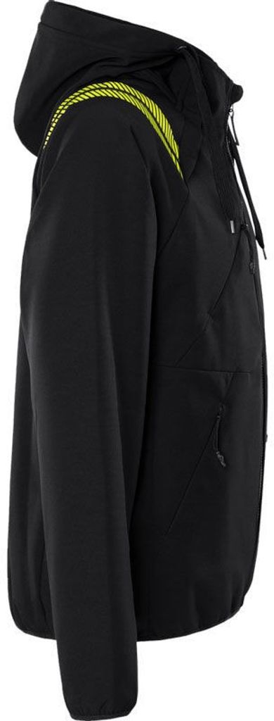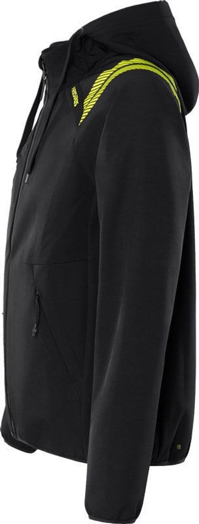 Jackan har en rad funktionella detaljer som gör den både praktisk och bekväm. Den reglerbara huvan med dragsko ger skydd mot vind och regn, medan raglanärmarna och stretchmaterialet säkerställer obehindrad rörelse. Med två framfickor och en bröstficka, alla med dolda dragkedjor, kan du säkert förvara dina tillhörigheter medan du arbetar. Elastisk bandkantning i ärmslut och nederkant bidrar till en bra passform, och den förlängda ryggen ger extra skydd mot drag och kyla.
