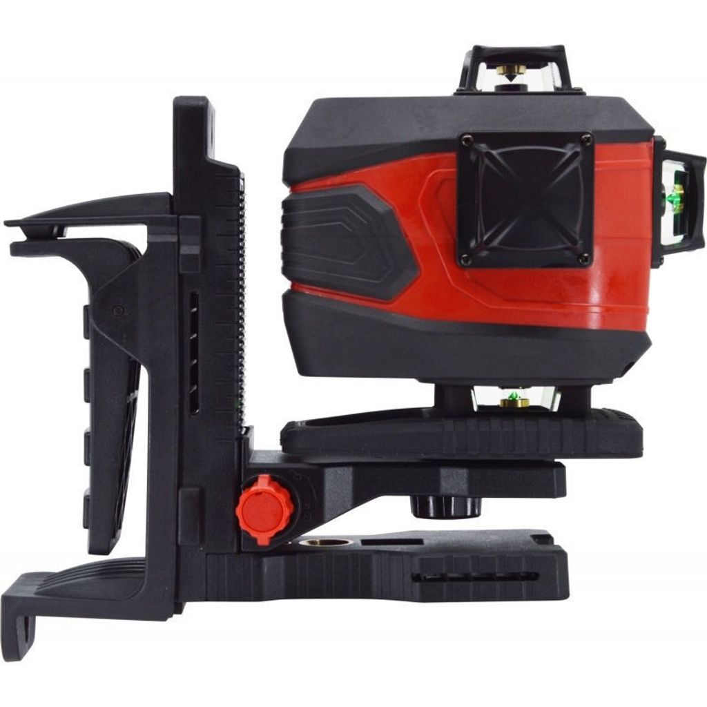 - Lasern är elektronisk med motordriven nivellering som ger en högre noggrannhet och en fastare linje som inte skakar eller rör sig lika lätt som en linje på laser med pendel nivellering. Du kan även låsa den och använda lasern i låst läge om du vill ha valfria vinklar.