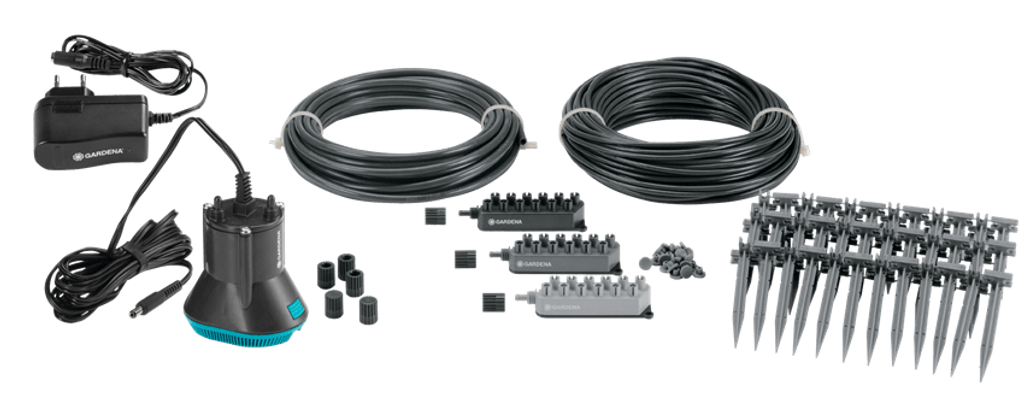- Över tre olika droppfördelare med 12 utlopp vardera kan du definiera olika vattenkrav för olika växter, från 15 ml i minuten till 30 ml/minut eller maximalt 60 ml/minut.