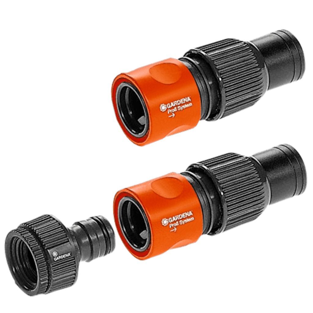 - Innehåll: 1 krankoppling med adapter för kranar med 26,5 mm (G 3/4) och 33,3 mm (G 1) gänga, 2 Profi Maxi-Flow System Slangkoppling för 19 mm (G 3/4") trädgårdsslangar.