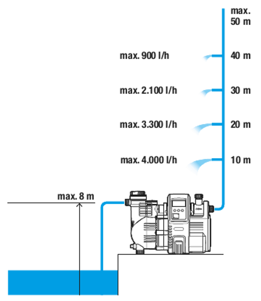 - Hem- & bevattningspumpen är utrustad med en jetpump som pumpar vattnet snabbt, tillförlitligt och tyst.
