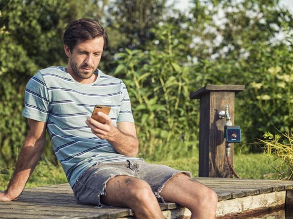 - Via Bluetooth®-anslutning kan den väderbeständiga Water Control enkelt användas inom en radie på upp till 10 meter. Det innebär att du kan starta och vid behov justera bevattningen av trädgården från solstolen. Ladda bara ner den kostnadsfria GARDENA Bluetooth®-appen som vägleder dig steg för steg genom anslutningsprocessen.