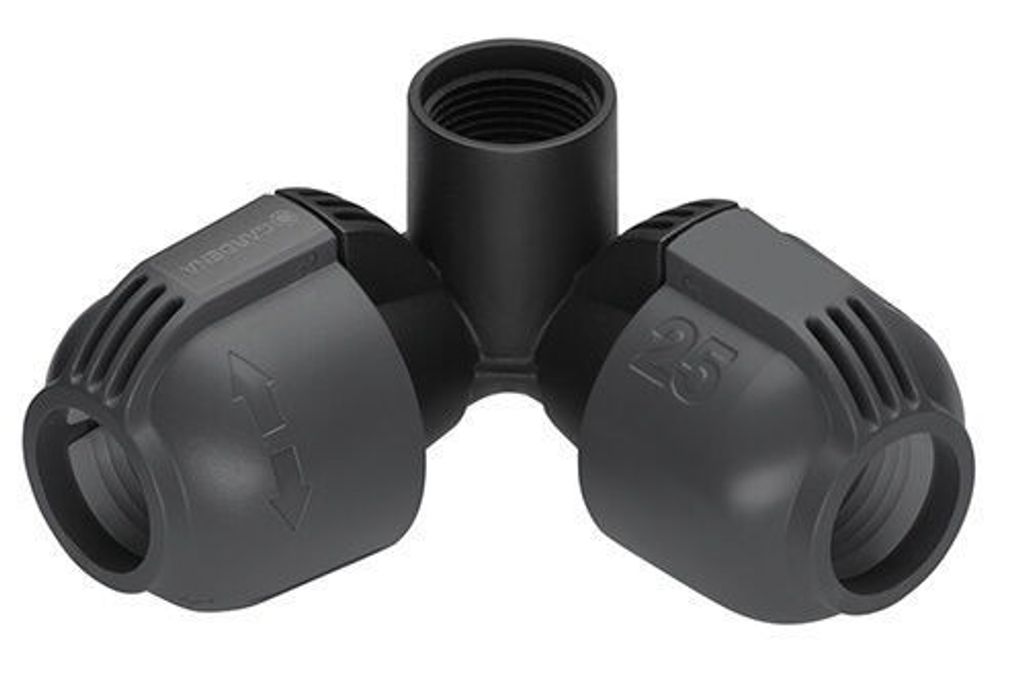 Vinklad L-skarv 25 mm x 3/4" hongänga för säker anslutning med GARDENA Sprinklersystem.