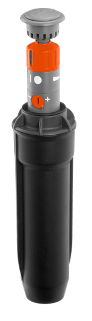 - Den kan kombineras med de turbodrivna popupspridarna T 200 och 380 (artikelnr 8203-29 och 8205-29) men också med den oscillerande popupspridaren R 140 (artikelnr 1537-29). - Räckvidden kan justeras variabelt mellan 4 och 6 m för det enskilda området.