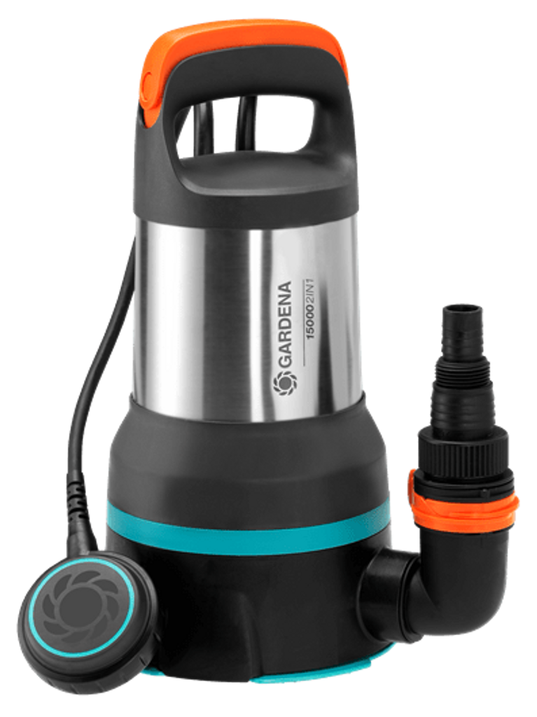 - Den dränkbara pumpen 15000 för rent vatten/spillvatten från GARDENA är inte bara enkel att hantera, utan även särskilt anpassningsbar när det gäller anslutningar. Det behövs bara ett klick med GARDENAs anslutningssystem så är du redo att pumpa. Det möjliggör direkt och enkel anslutning av slangar med en diameter på 25mm, 32mm och 38mm såväl som anslutning med en G1"- eller G1 ½"-gänga.