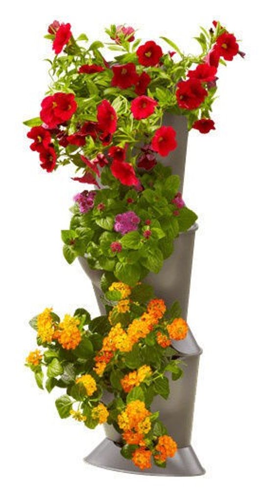 - Grundpaketet består av 3 vertikala växthållare för hörn (3 "krukor" i varje), 3 lock, 1 golvbricka och 12 anslutningsklämmor