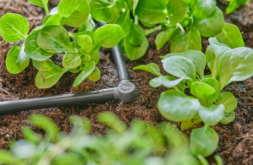 De tio medföljande L-kopplingarna är idealiska för att ändra riktningen på 4,6 mm försörjningsrör och 4,6 mm droppslangar med 90° i trädgårdsbädden. De möjliggör också en veckfri installation över kanten på en blomkruka.