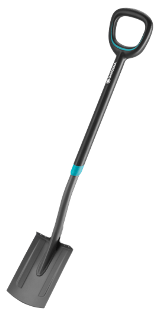 GARDENA ErgoLine Smal spade är ett särskilt lämpligt verktyg för att gräva och lyfta ur, luckra upp och flytta jord. Det extra breda och ergonomiskt formade D-handtaget kan bekvämt hållas med båda händerna när som helst för att underlätta arbetet.