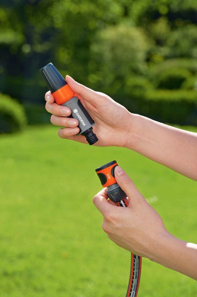 GARDENA Rengöringsmunstycke är den klassiska bevattningspistolen. Den kan användas till rengöring eller bevattning och du kan själv välja vattenstrålens form, från hård stråle till fin dimma.