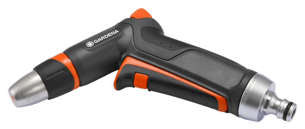 GARDENA Premium Strålpistol är det robusta sprutmunstycket som passar lika bra för rengöring som för bevattning. Vattenstrålen kan justeras från hård stråle till fin spraydimma.