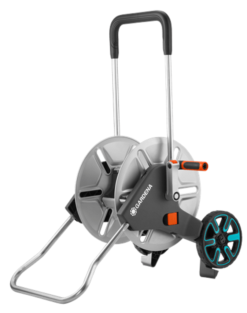 GARDENA CleverRoll M Metal är extra stadig och robust och tål även höga belastningar i trädgården. Den möjliggör utrymmesbesparande förvaring av trädgårdsslangen och är bekväm att använda.