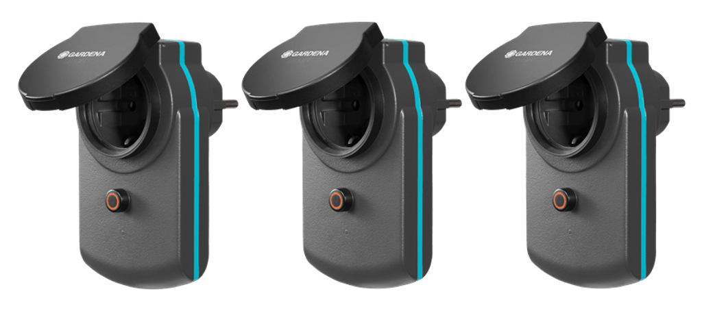 - Strömadaptern arbetar i enlighet med tiderna som är schemalagda i appen. Till exempel kan såväl trädgårdsbelysning som en fontän eller en pump, anslutas till GARDENA smart system och styras via appen, genom att använda den smarta strömadaptern.