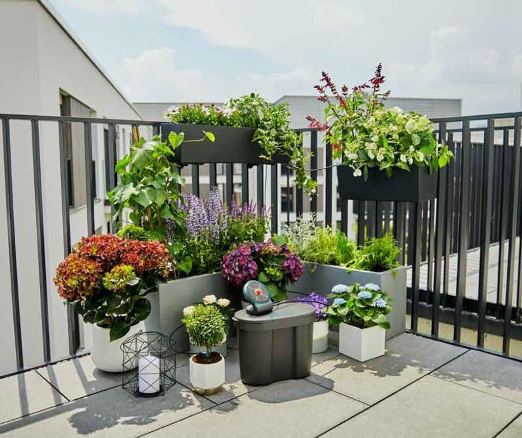 Gardena AquaBloom Set med vattenbehållare 13301-20 är en smart, solcellsdriven bevattningslösning för upp till 20 krukväxter – helt utan behov av eluttag eller vattenkran. Systemet är perfekt för dig som vill säkerställa regelbunden vattning under semestern eller hektiska perioder. Den medföljande vattenbehållaren på 10,5 liter räcker länge och är tillverkad av 80 % återvunnet material. Med hjälp av tryckreglerande Inline-droppmunstycken vattnas varje växt jämnt med 0,5 l/h. Systemet är enkelt att installera och kan användas både inomhus, i uterum eller på balkong.