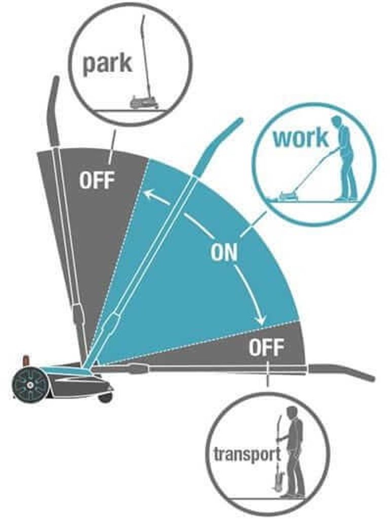 - När arbetet är klart kan du vrida tillbaka handtaget till upprätt läge, och det blir då enkelt att hitta en förvaringsplats.