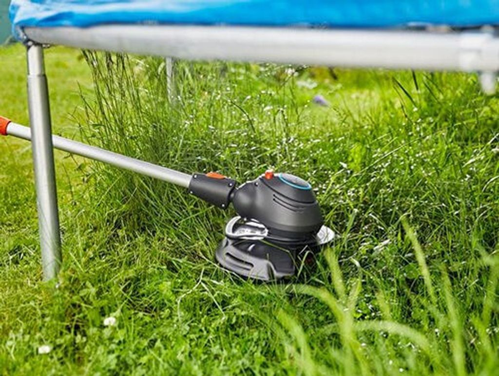 - Genom att luta trimmerhuvudet vertikalt kan du dessutom utnyttja kantskärningsfunktionen. På så sätt kan du enkelt klippa längs gångar och staket.