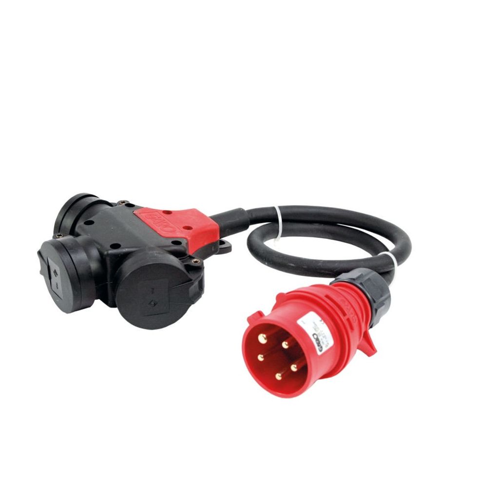 - Grenuttag 3-vägs 230V med 0,5m kabel 5G2,5 H07RN-R och stickpropp 416-6 400V.