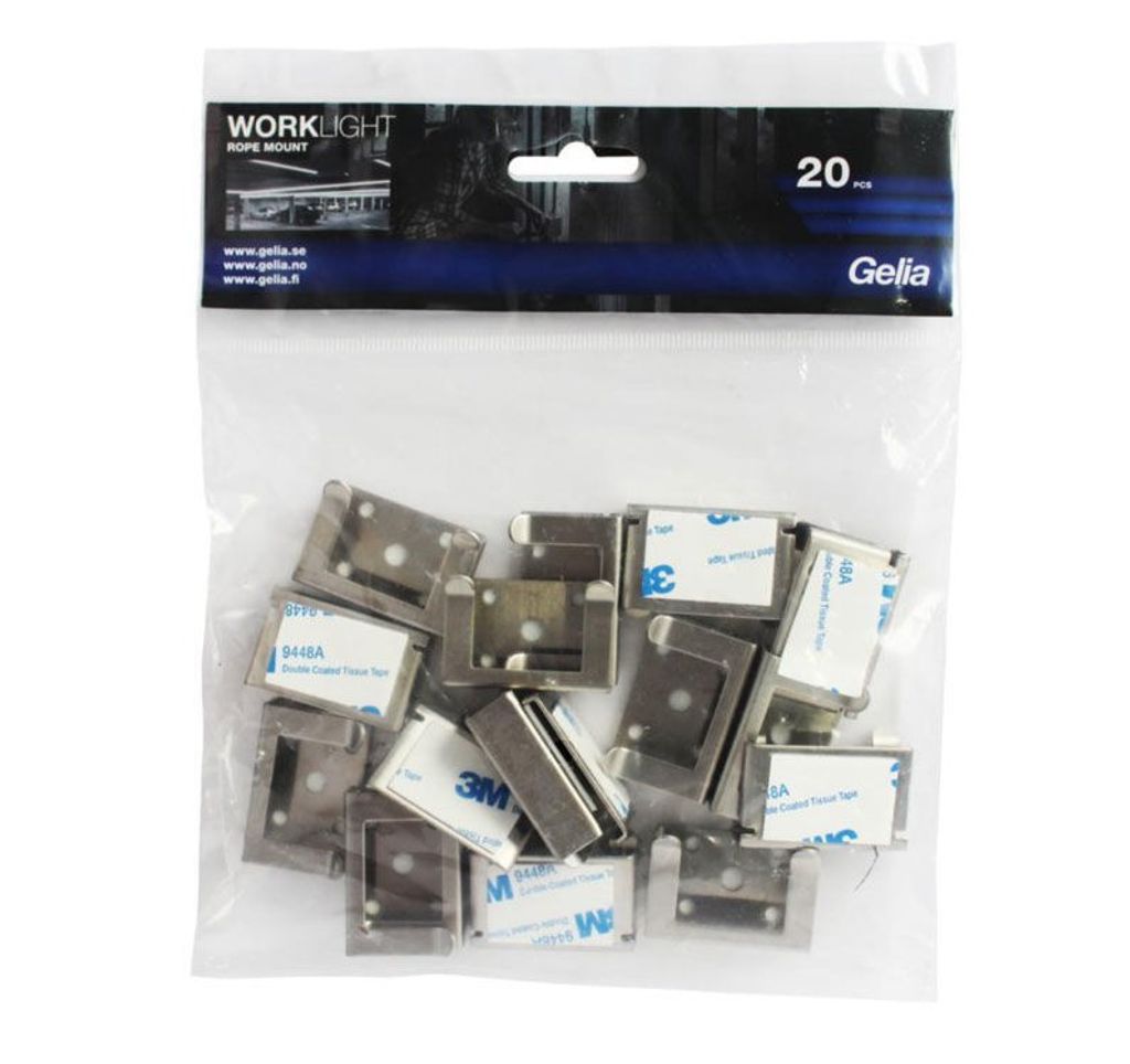 Gelia Fästclips är designade för att enkelt och säkert fästa Gelias LED-slinga ROPE. Varje paket innehåller 20 clips, vilket ger tillräckligt med fästen för att säkra din LED-slinga på önskad plats.