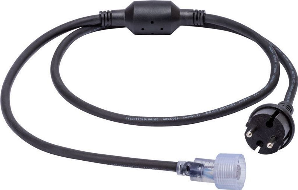 Gelias strömkabel med omvandlare (230V) är särskilt utformad för enkel och effektiv anslutning till LED-slingan ROPE Worklight. Med en längd på 1,5 meter, erbjuder den tillräcklig räckvidd för att underlätta installation och placering av LED-slingan i olika miljöer. Omvandlaren är anpassad för att hantera upp till maximalt 50 meters LED-slinga, vilket gör den idealisk för projekt av olika storlekar och omfattning.