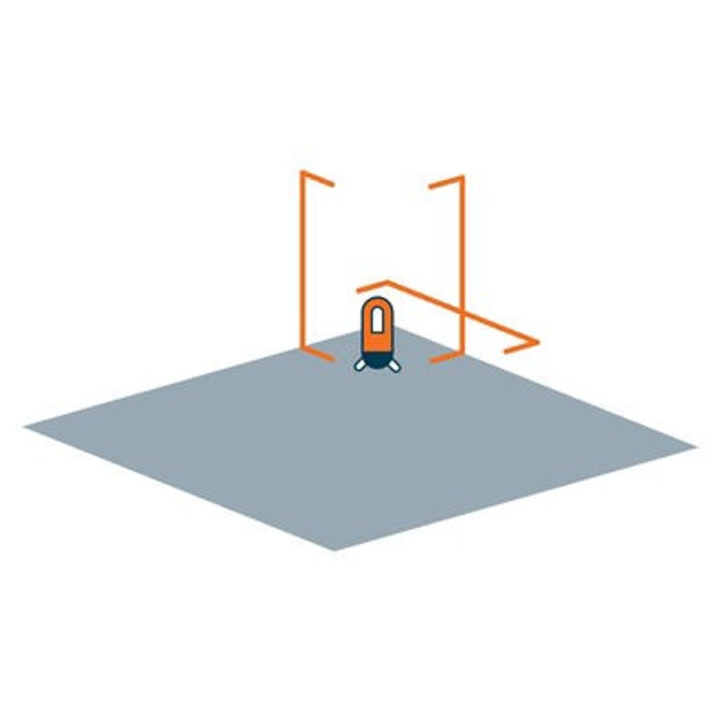Självnivellerande batteridriven 3-linjelaser som visar lod- och våglinje och 90°. Låsbar för säker transport.