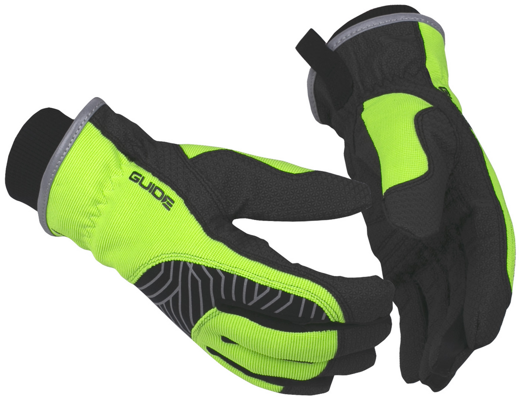 Vind-och vattentät arbetshandske i syntetläder. Förböjd passform. Bra grepp.