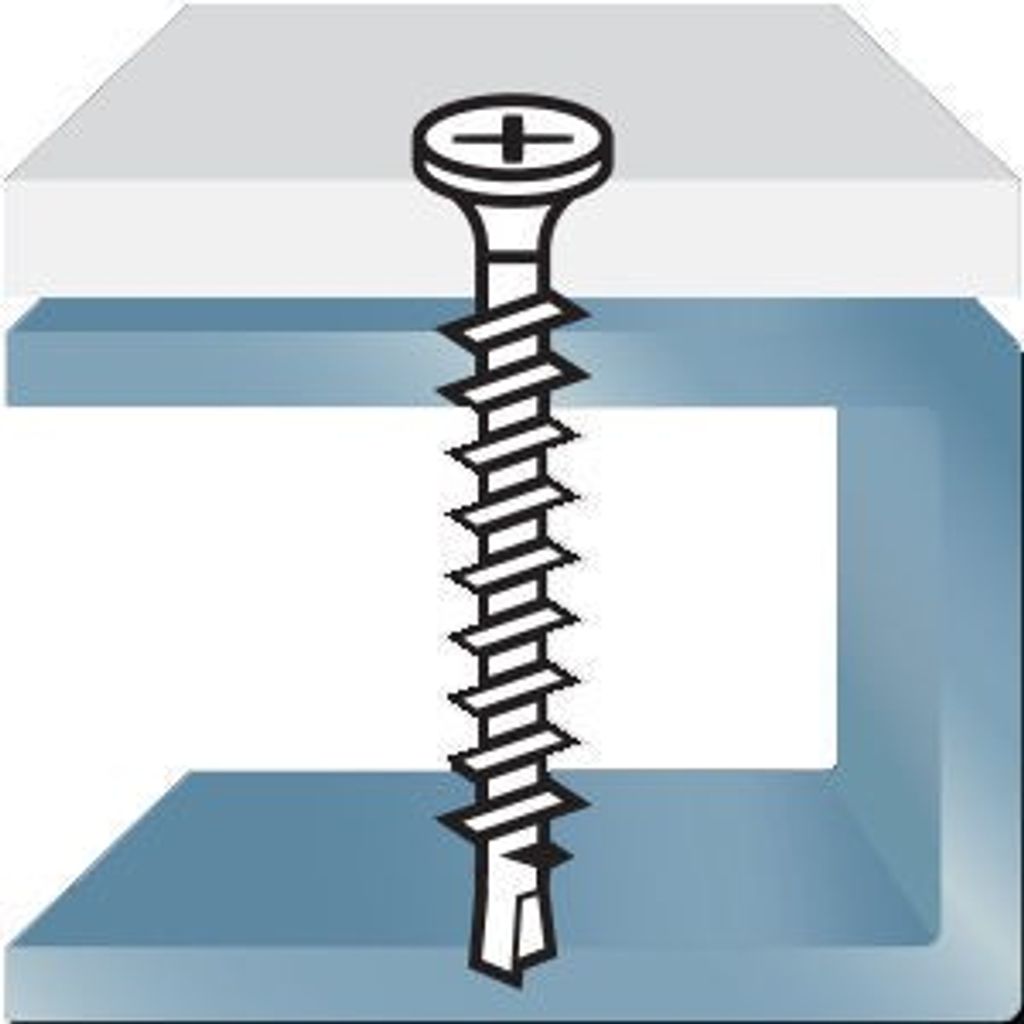 Gunnebo bandad 40mm gipsskruv med borrspets för stålregel från 0,7mm till 3,0mm som används inomhus eller i torra miljöer för att fästa gips mot stålreglar.