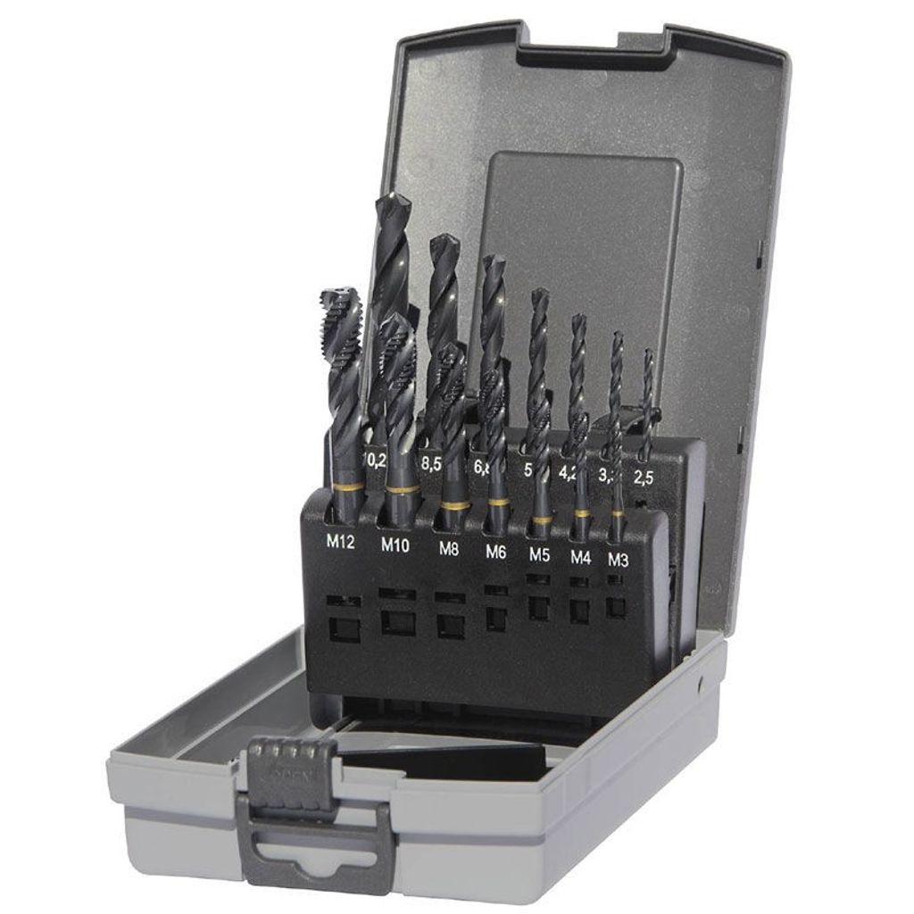 5698. Power Tap. Sats med 7 st maskingängtappar anpassade för de flesta typer av metall, såsom stål, gjutjärn (legerat och olegerat) och rostfritt, och 7 st HSS-E borr.