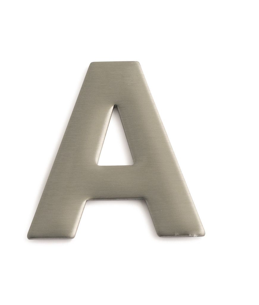 Bokstav A av rostfritt stål. För markering av husnummer, brevlådor etc.