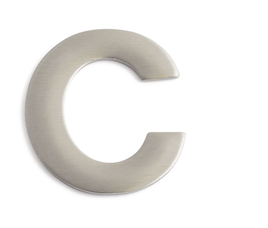 Bokstav C av rostfritt stål. För markering av husnummer, brevlådor etc.