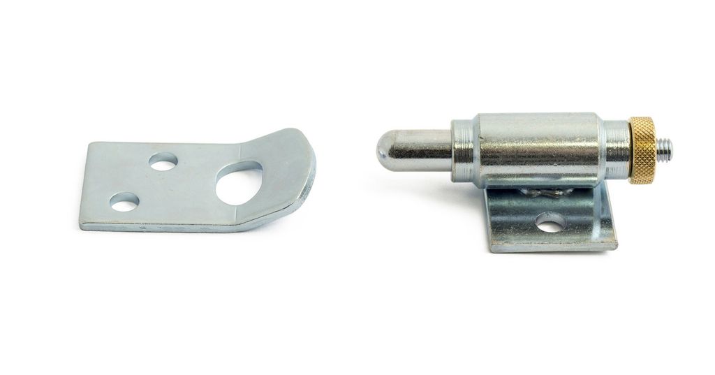 Fjäderbelastat boxlås av stål inklusive slutbleck.