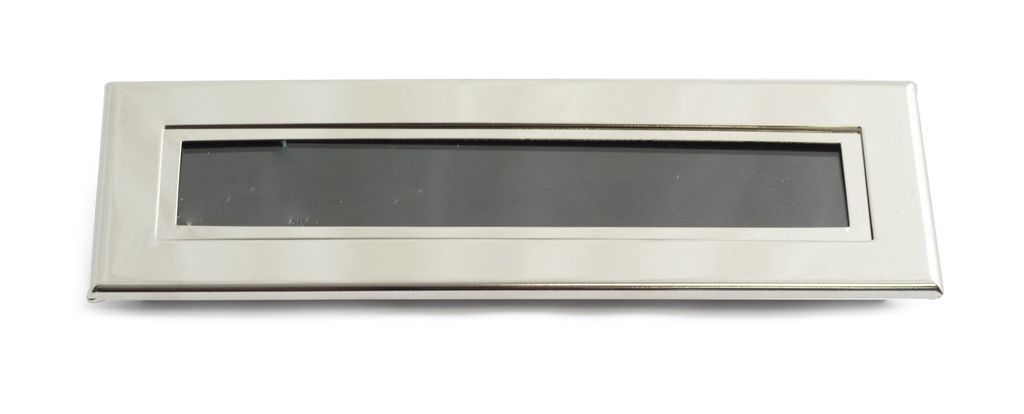 Brevinkast av mässing med svart pannå för märkning.