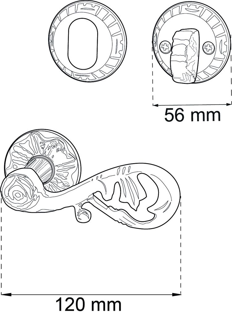 Dörrhandtag av mässing med öppen baksida. Traditionellt antikbehandlat handtag som passar utmärkt till äldre dörrar.