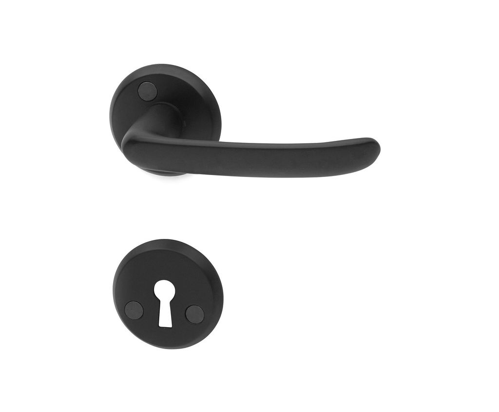 Dörrhandtag och nyckelskylt av zink/zamak för innerdörr. För dörrtjocklek 38-60 mm.