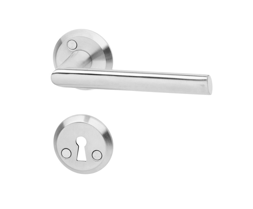 Dörrhandtag av rostfritt stål. Stramt och minimalistiskt handtag som passar bra till modern design.