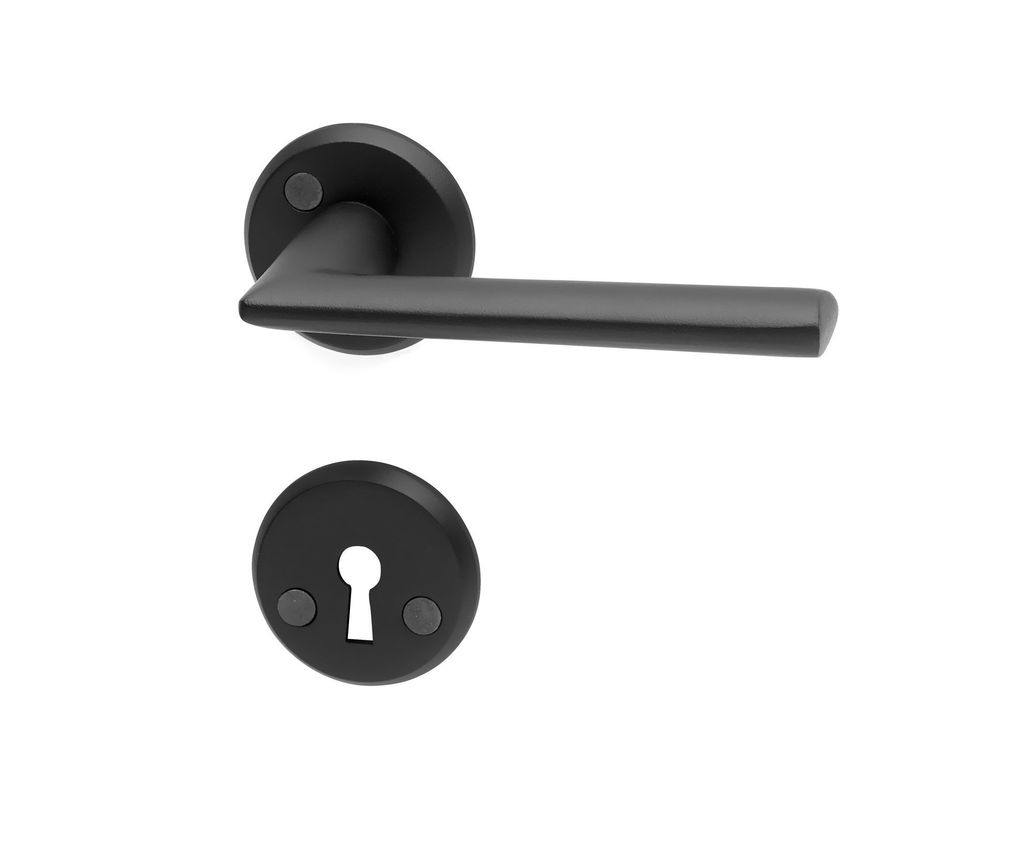 Dörrhandtag och nyckelskylt i svart. Passar till dörrtjocklek 38-42 mm.