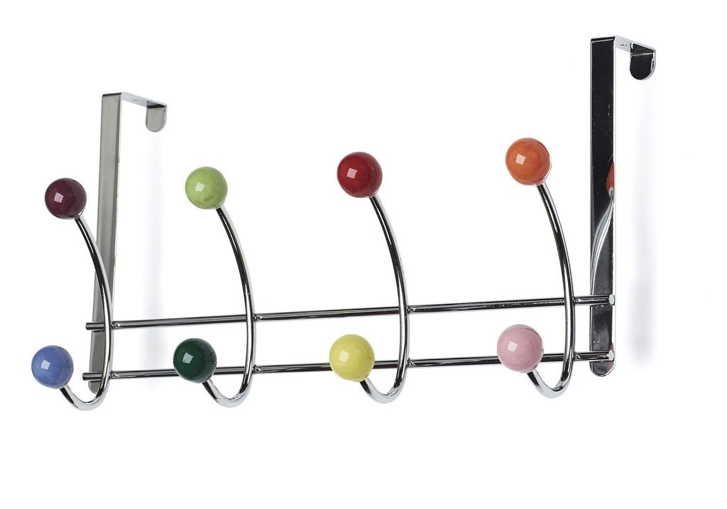 Krokrad för dörr av förkromat stål med flerfärgade knoppar av porslin. Passar lika bra i barnrummet som i hallen.