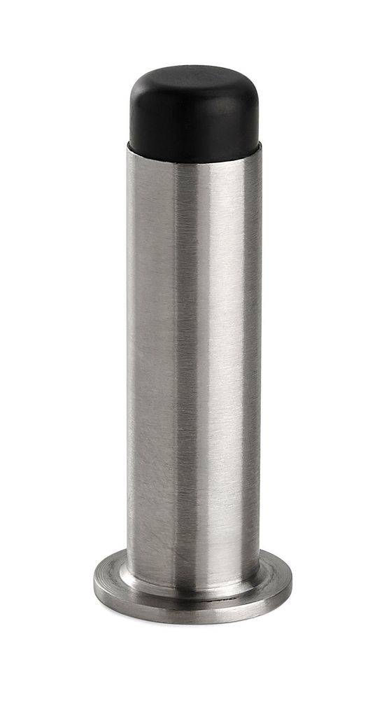 Dörrstopp av rostfritt stål för dold fastsättning med skruvstift. Skyddar dörr och vägg från slag och skador.