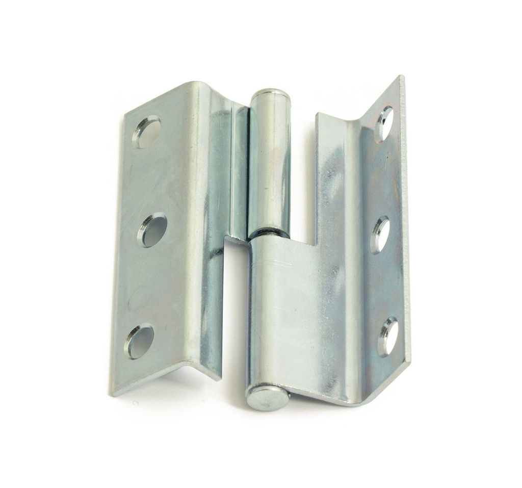 Vinkelbockat lyftgångjärn av stål för överfalsmått 10 mm. Vänstermodell.