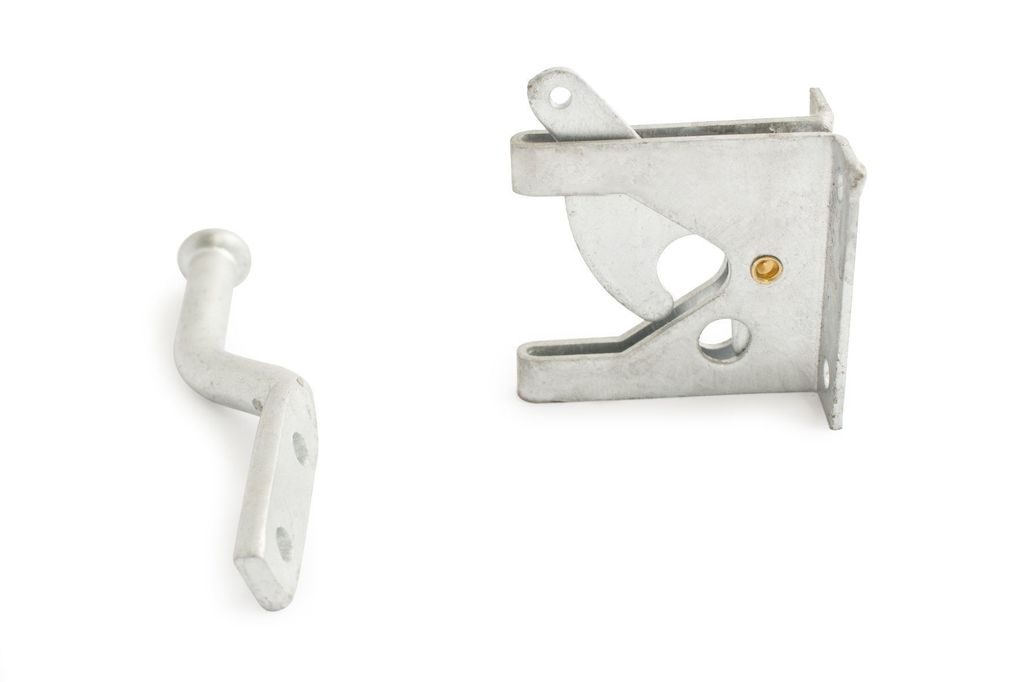 Grindlås av varmgalvaniserat stål. Kan låsas med hänglås med max 8 mm bygel.