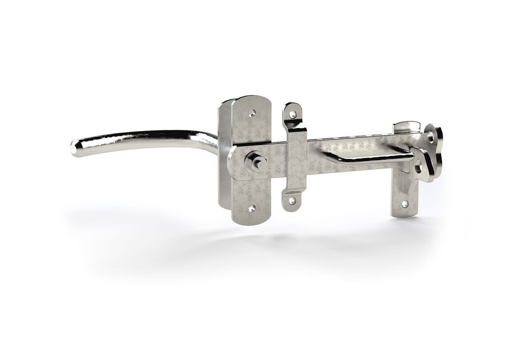 Grindlås/portlås av stål för dubbelsidig manövrering. Passar till grindtjocklek 26-50 mm.