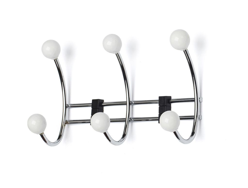 Krokrad av förkromat stål med vita knoppar av porslin. Passar lika bra i barnrummet som i hallen.