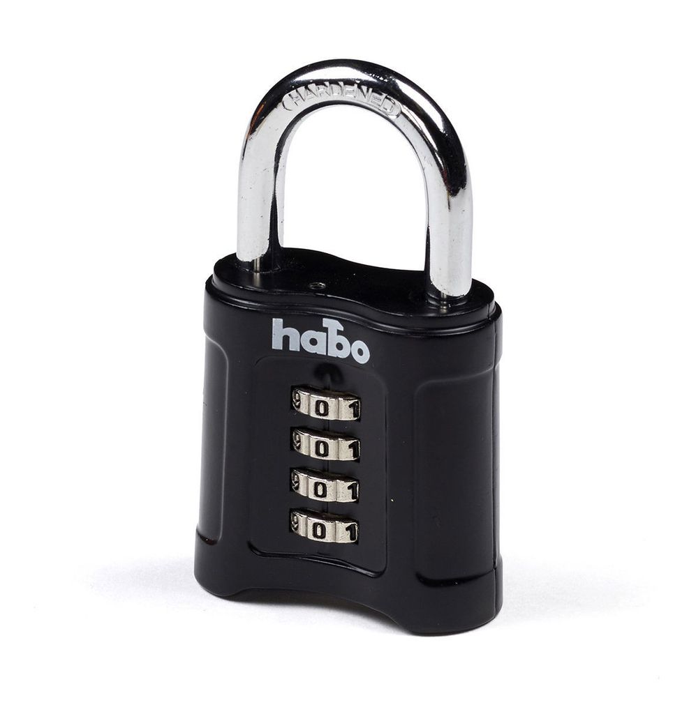 Kombinationslås av pressgjuten zink med bygel av härdat stål. Låset har en 4-ställig sifferkod som enkelt kan ställas in och ändras efter eget önskemål.