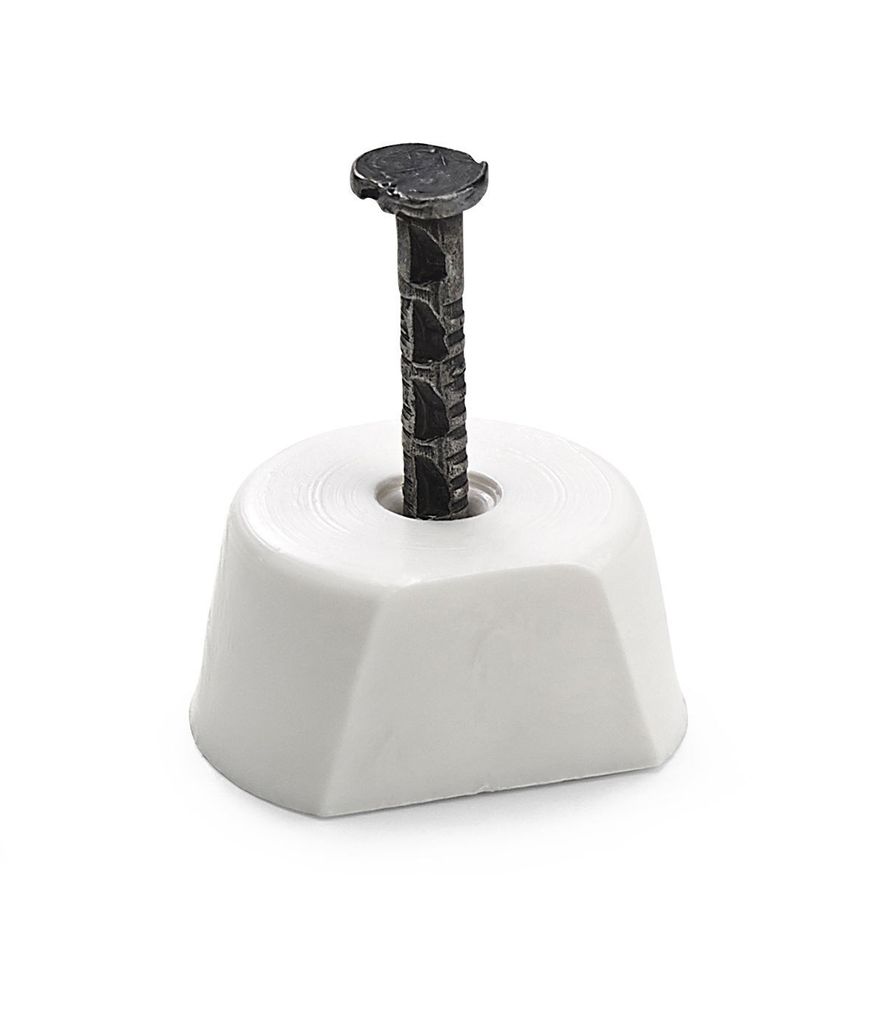 Hyllbärare av plast med spik. Förenklar upphängning av hyllplan där förborrade hål saknas.