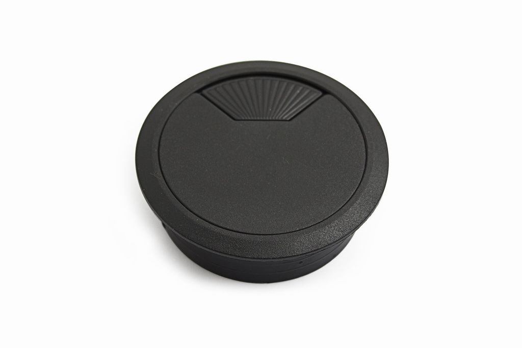 Kabelgenomföring av plast. För infällning i bordsskiva.