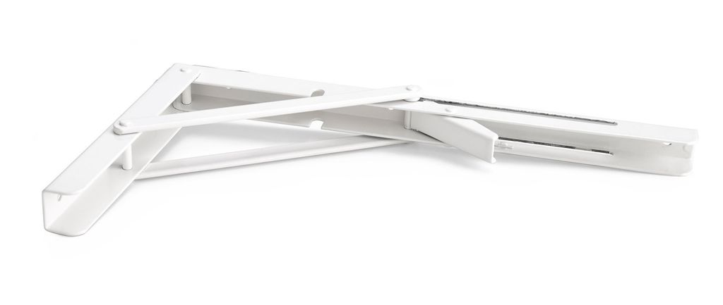 Kraftig nedfällbar konsol av vitlackerat stål. Maxbelastning 75 kg.