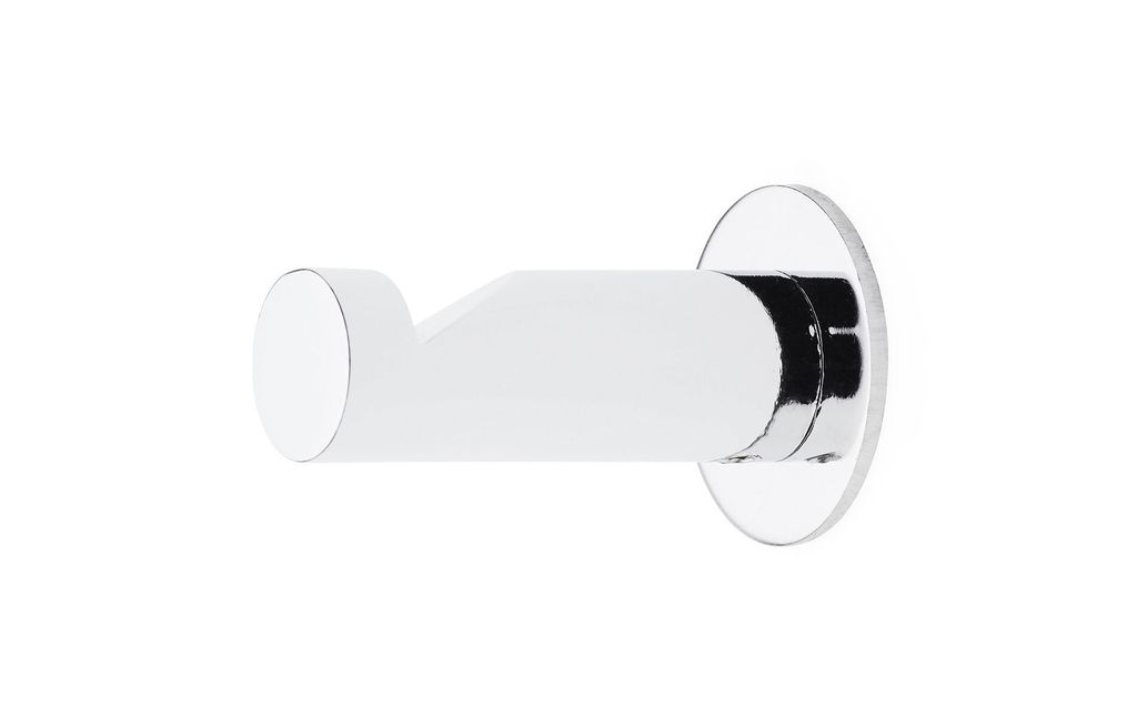 Krok av stål med dold fastsättning. Passar som handdukskrok i badrummet osv.