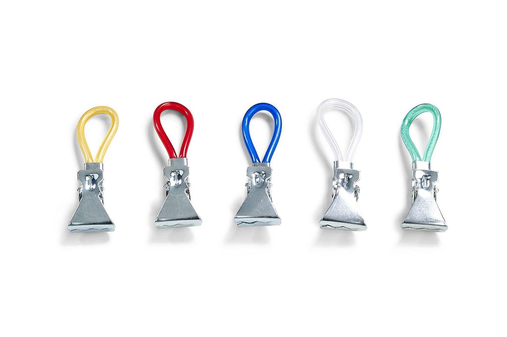 Ögla med klämma i sorterade färger. Bra lösning för handdukar utan hängare.