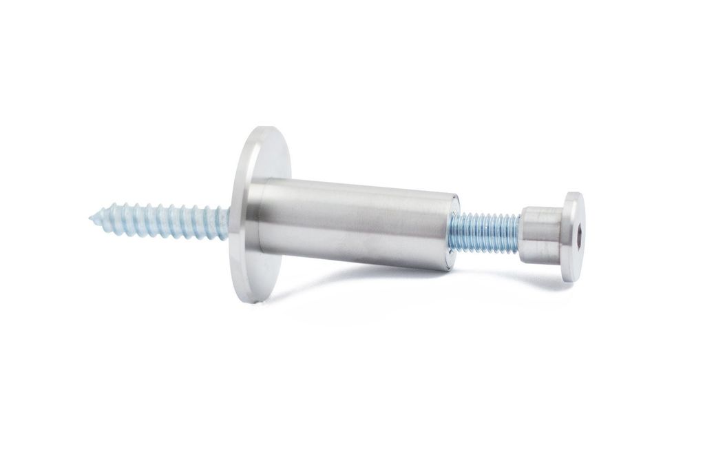 Beslaget är utrustat med en toppmutter för insexnyckel som ger en ren montering utan synliga skruvhuvuden. Det längre skruvstiftet på 120 mm ger extra stabilitet vid montering i djupare material eller tjockare väggar.
