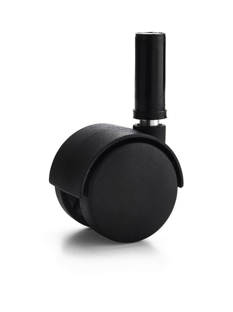 Möbelhjul med tapp av stål. Hjul av svart nylon.