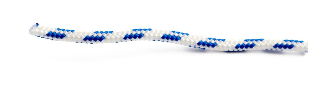 Flätat förtöjningsrep av polypropen. Repet flyter tack vare materialets låga vikt.