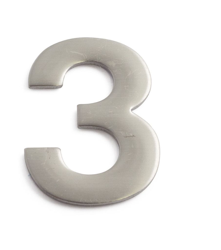 Siffra 3 av rostfritt stål. För markering av husnummer, brevlådor osv.